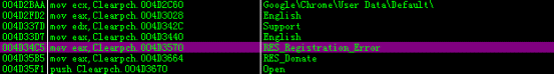 (4)在WLan_English.ini中查找到“RES_Registration_Error = Registration is not valid, please try again.”这样一条信息,于是尝试在OD中查找RES_Registration_Error,果然找到了 一处,如下图所示