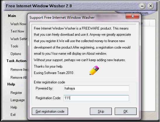 注:对英文不熟悉的朋友,可以将软件语言改成中文,注册时直接点击Skip,然后点击Help栏目下的Language,选择其中的Chinese即可