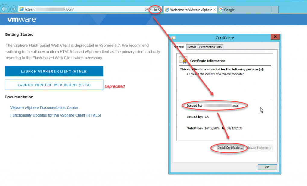 但是,这似乎不是正确的证书。但是,我可以看到混乱的来源。由于正确的证书将存储在受信任的根证书颁发机构中,因此此下载链接将为您提供vCenter Server的根证书。