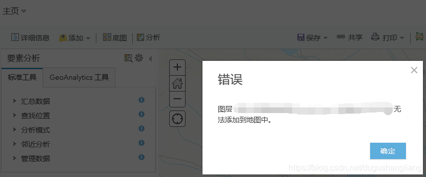 在地图查看器中——错误:无法访问分析服务。
