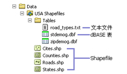 - 地理数据不仅仅局限于 shapefile 可存储的简单要素和属性。例如:在地理数据库中,可支持注记、属性关系、拓扑关系、属性域和子类型、坐标精度和分辨率以及很多其他功能,但在 shapefile 中则不支持这些内容。
