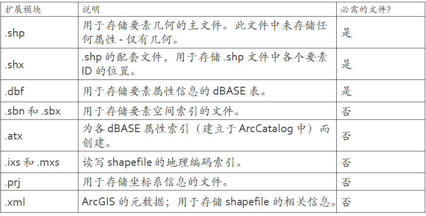 Shapefile 是一种用于存储地理要素的几何位置和属性信息的非拓扑简单格式。shapefile 中的地理要素可通过点、线或面(区域)来表示。包含 shapefile 的工作空间还可以包含 dBASE 表,它们用于存储可连接到 shapefile 的要素的附加属性。(多点、多面)
