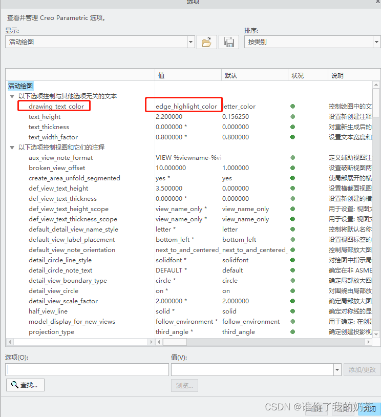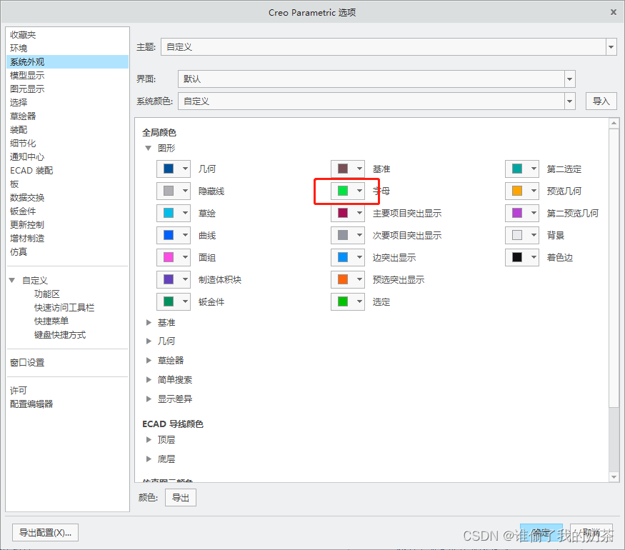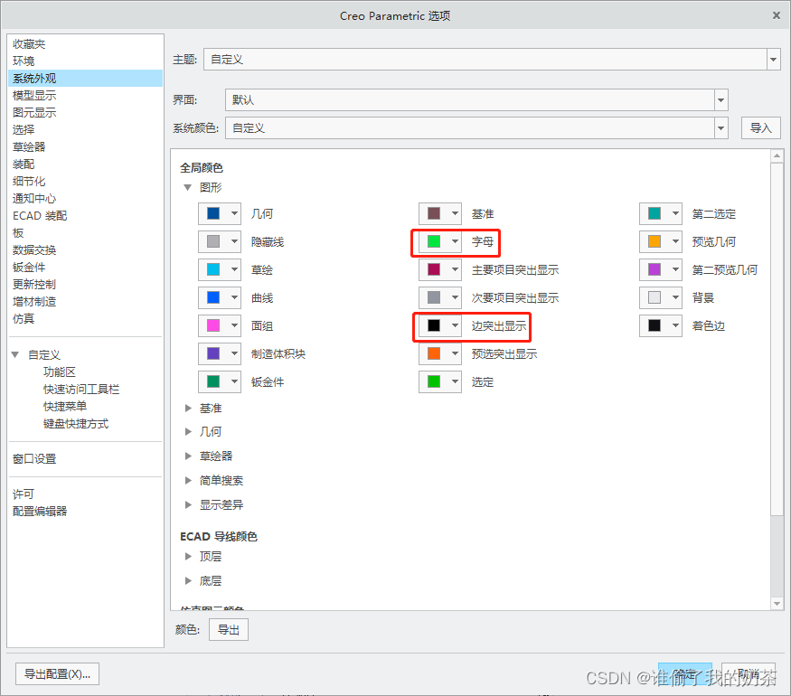 下面的edge_highlight_color意思是指"边缘_亮点_颜色”,也就是后面那个图里所示的“边突出显示”(这一步是指尺寸的数字颜色的意思,就是“边突出显示”这项选择颜色)