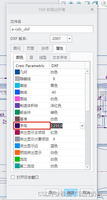 导出的DXF中,下图圈中的一项“字母”映射到CAD 是绿色尺寸线和绿色的尺寸值文字