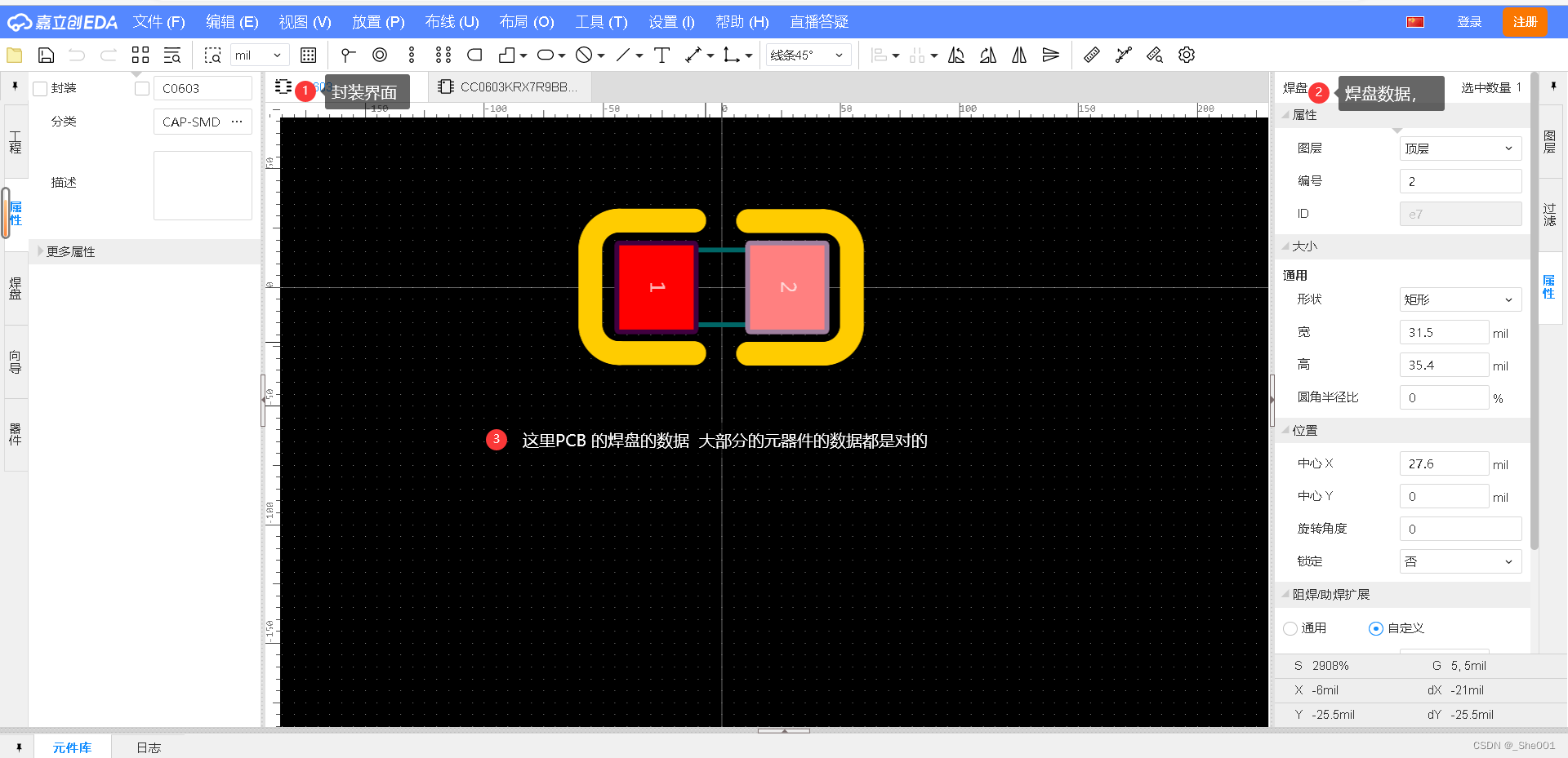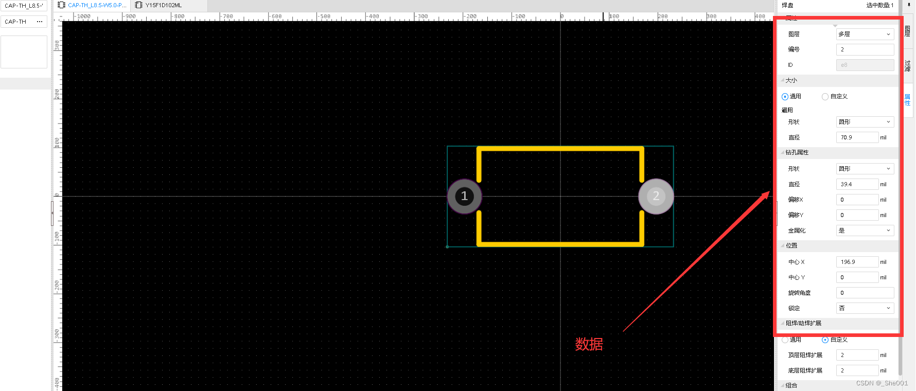 从下面图片可以发现 焊盘的数据,与 封装电容的数据。