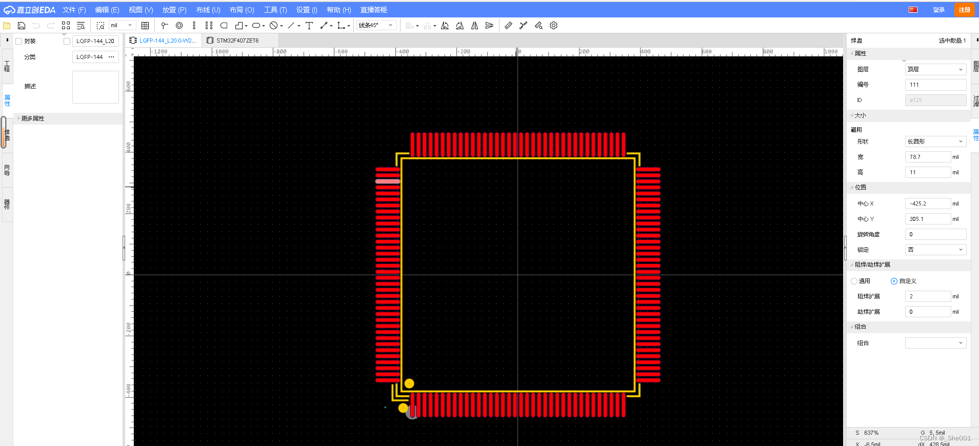 因为stm32f407zet6 数据没有钻空,所以他是贴片的!!