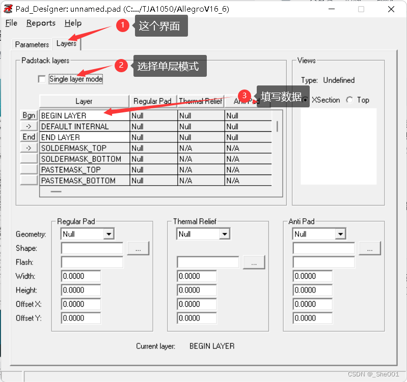 begin layer :开始层,如果是通孔焊盘的话,一般指top层;
