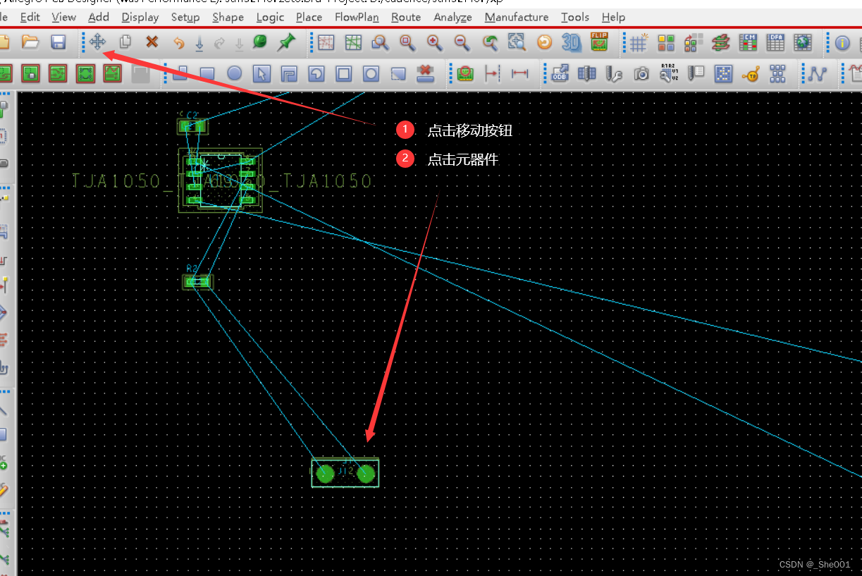 三, 我们点击发光的物体,就可以大规模的移动很多的元器件了。
