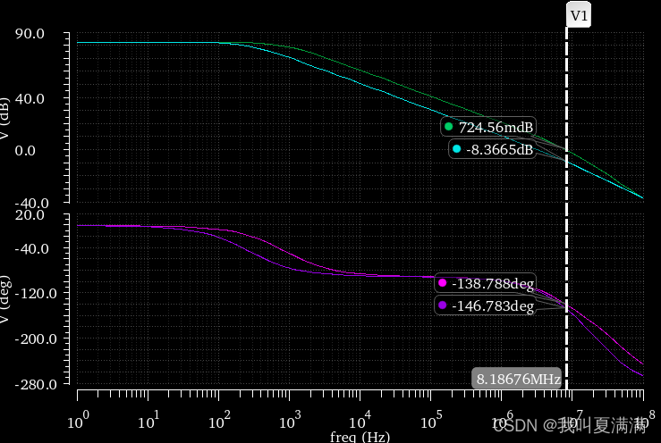两级运放,弥勒电容补偿,改变弥勒电容大小,影响GBW和PM