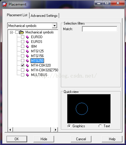 4)打开Placement List选项卡,选择 Mechanical Symbols下拉边框选择 定位孔,然后点击Hide放置定位孔。具体详见下图。