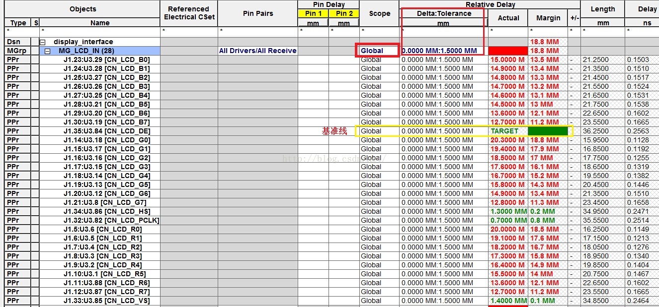 当约束设置完成后,PCB工具会自动根据定义 的约束对设计进行检查,不合符约束的地方会用DRC Markers 标记出来。