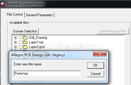 步骤6:在Artwork Control Form窗口,右击Available Films列表中TOP,选择快捷菜单的Add选项,弹出Allegro PCB Design GXL对话框。
