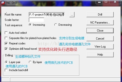 Root file name文本框:设置钻孔文件保存路径和名称,文件的后缀名".drl"。一般使用默认即可