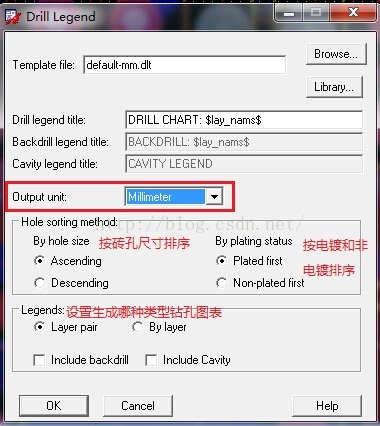 4)选择Manufacture |NC | NC Legend命令,弹出Drill Legend窗口。只需要选择 Legends复选框中Layer pair按钮,其他保持默认。
