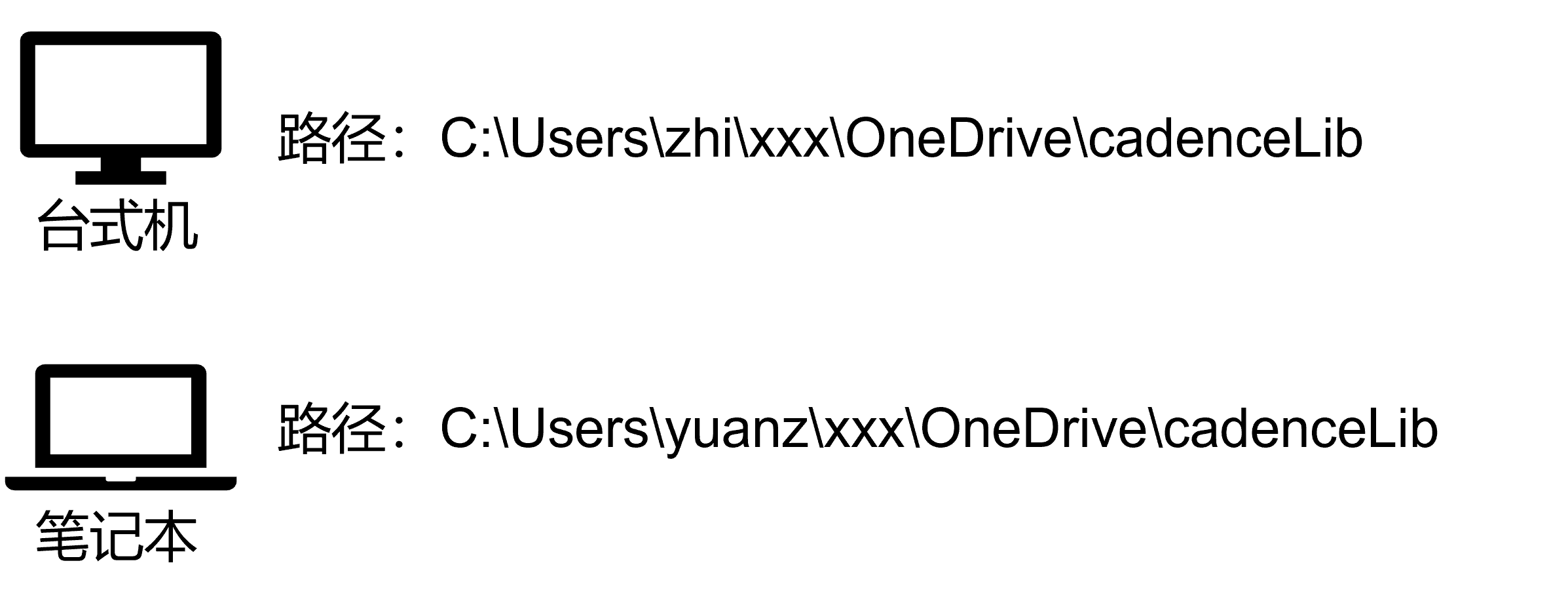 现在两台电脑是这样的↓(其实也可以把OneDrive路径设置成一样的):