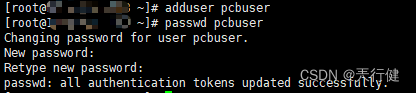 adduser pcbuser5.给用户设置密码,输入两遍密码完成设置: