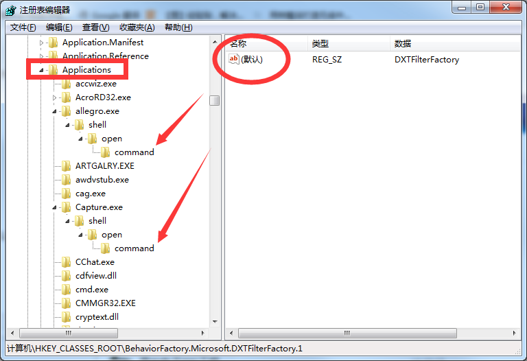 [HKEY_CLASSES_ROOT\Applications\allegro.exe\ shell \open\command]