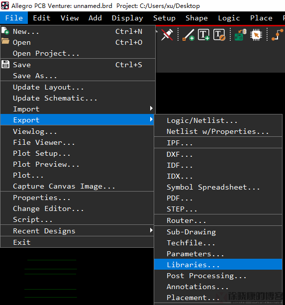 AD的PCB封装库格式是xx.PcbLib,Allegro的PCB封装库格式是xx.dra,目前无法实现PcbLib直接转成dra,而是通过AD PCB转Allegro PCB,再提取出封装库这种方法间接实现转换。步骤如下: