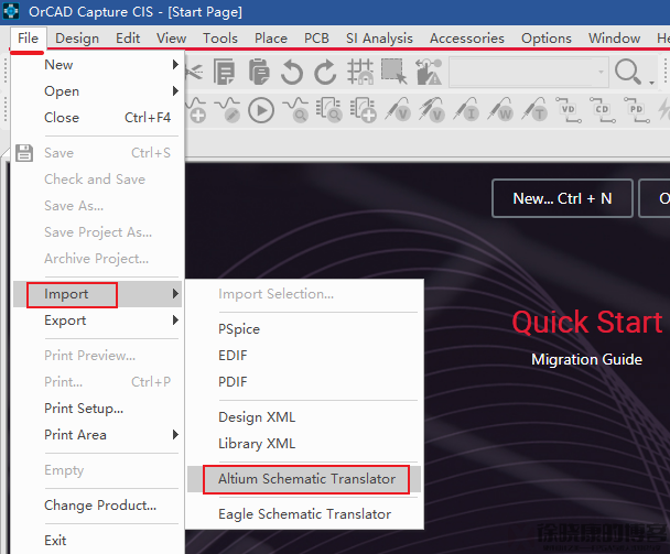 1.3 打开Orcad,File -> Import -> Altium Schematic Translator