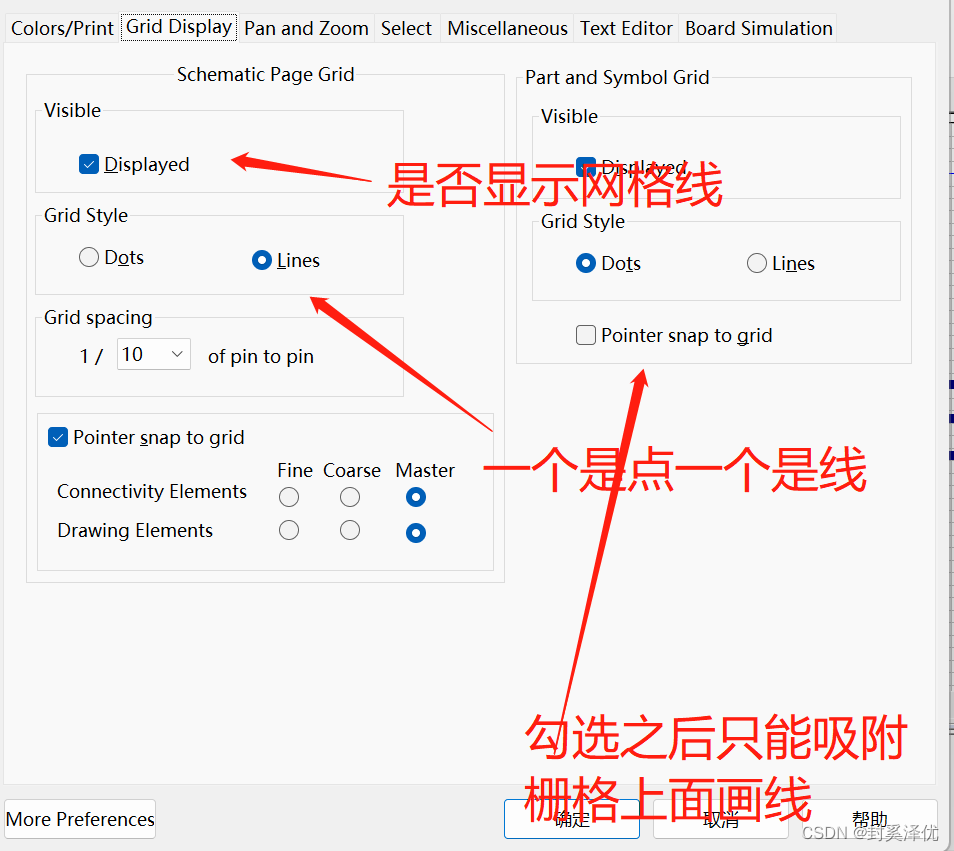 解决 :1.选择Options-->Preferences-->Grid Display--->取消勾选Pointer snap to grid--->确定。