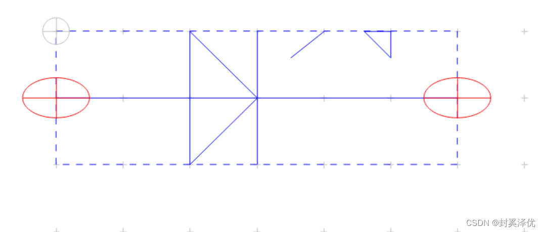 R1整个的区域我是采用才3*3的区域绘制,引脚放在左右两边的正中间,先给他添加两条辅助线,因为要话那个折线,用辅助线的话更加直观 控制 角度,每次线的连接都落在上下的辅助线上面,更加美观一点。