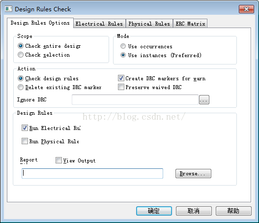 Scope:范围,是检查整个设计,还是只检查选中的部分;