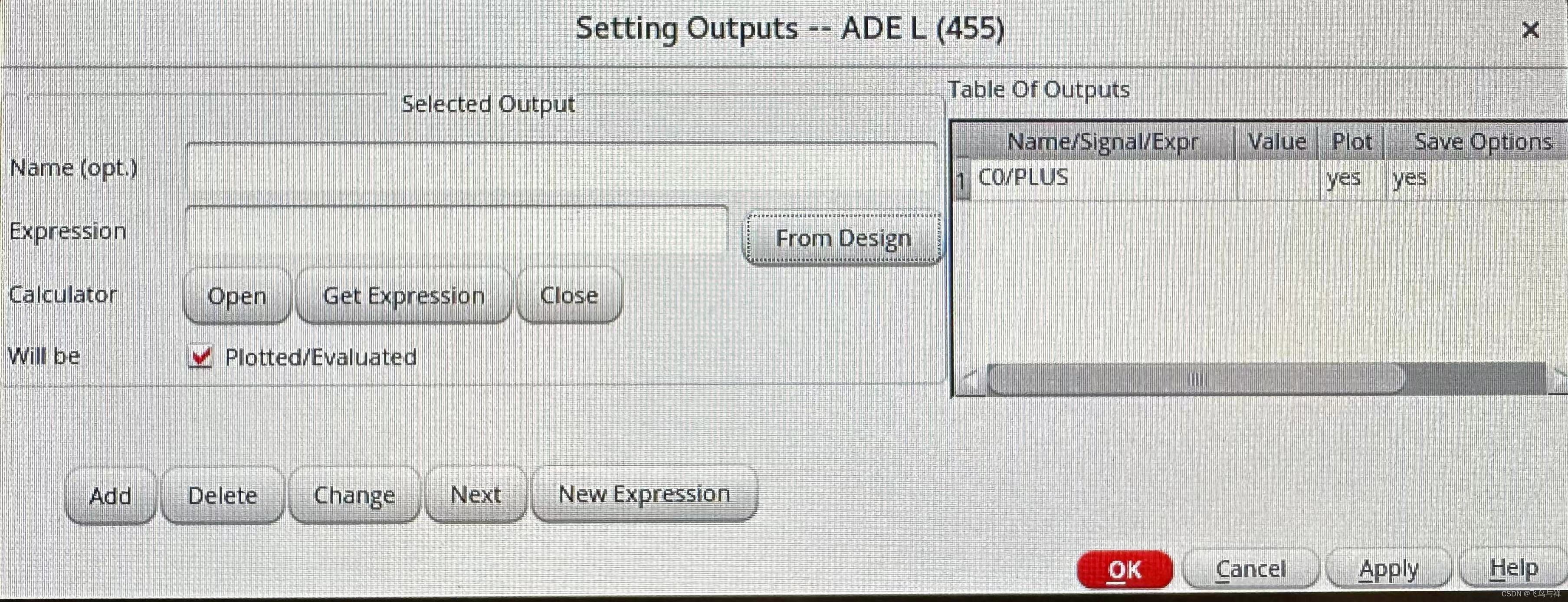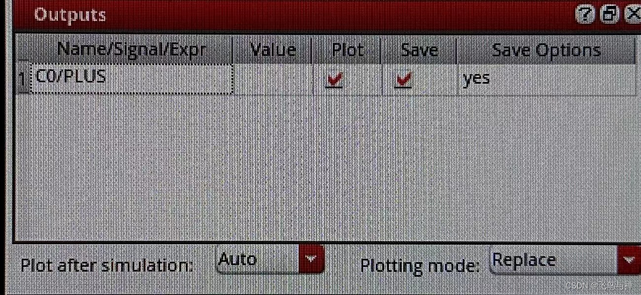 3、设置输出结果,选择From Design ,点击待测电容的PLUS端,并在Outputs中勾选Plot。