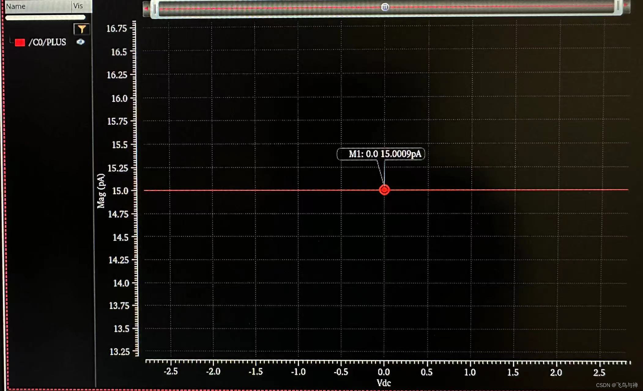 仿真得到电流值为15.0009,非常接近待测电容值15