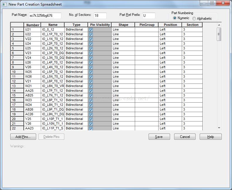 8.然后将管脚名称和管脚序号从excel中复制进去即可。