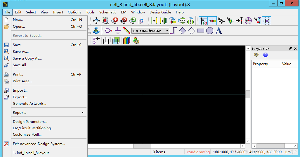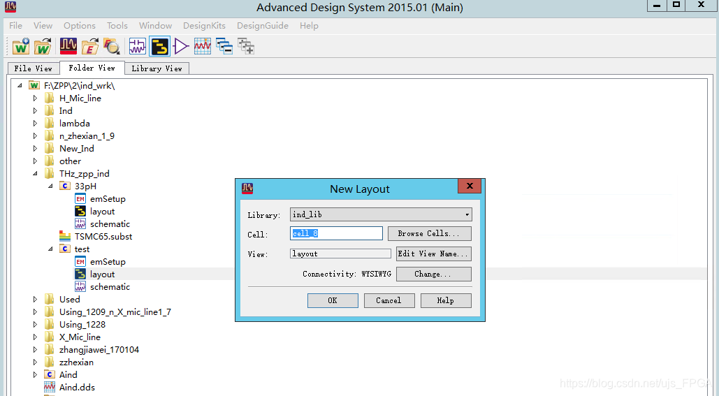 利用Wincap,将所导出来的1_ind.gds传到我们自己的电脑上,打开ADS并新建一个layout。