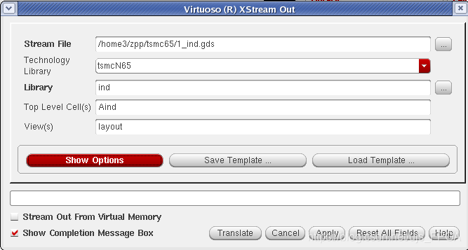 第三步:填写导出后的GDS2名字。(username----填写你自己的用户名)