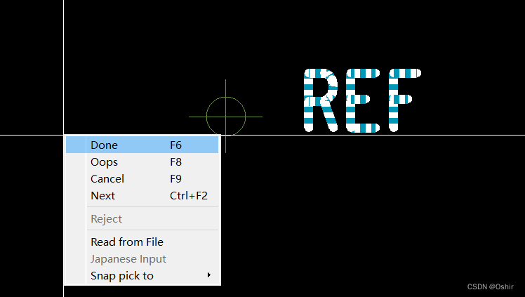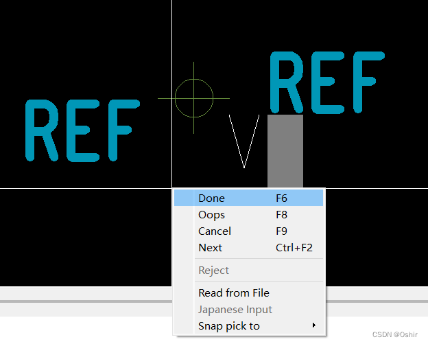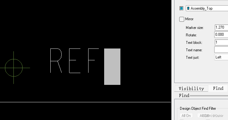 3.14 将三个文本放置到原点,点击选 中文 本REF,如下图;