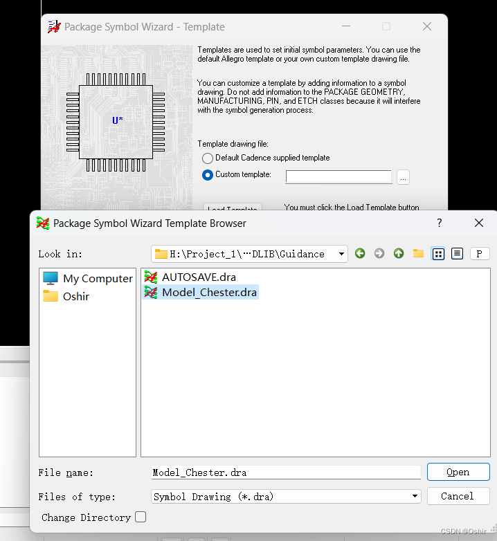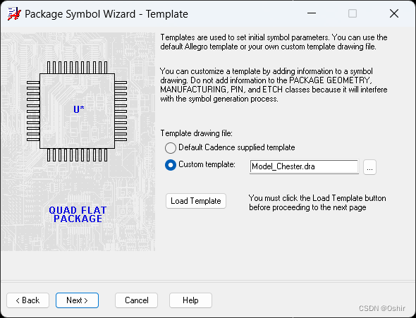 默认是用Cadence系统自带的,但是无法进入下一步的,所以要点Custon template,再点"...",找到模板文件的路径,双击模板文件,