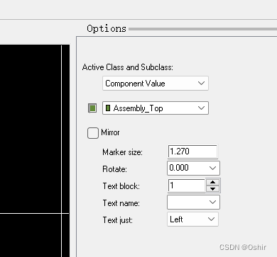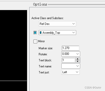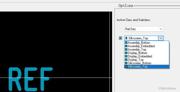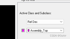 然后在右侧一栏Options里,选择Ref Des里的Assembly_Top装配顶层,如下图。