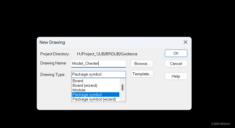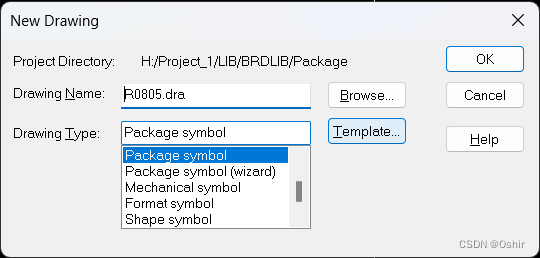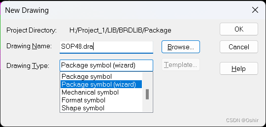这里说明一下, Package symbol用于制作不规则的元件封装,而Package symbol(wizard)用于制作规则的元件封装,如IC等。这里选择Package symbol