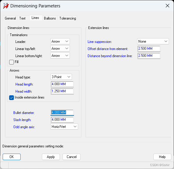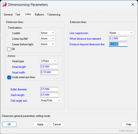 Distance beyond dimension line: 0.3 MM.