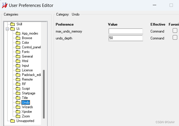 3.11.4 修改撤销次数,点击Ui的"+"号展开,点击Undo,修改undo_depth的值为50,这个值可以根据电脑的配置来设置,电脑配置越高,值可以越大。