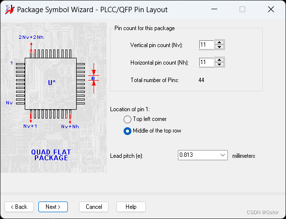 到这里就可以根据实际的元件进行填写相关尺寸和管脚信息了。