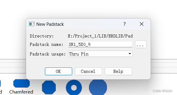 确认后就可以在Padstack name这一栏填写焊盘文件名。