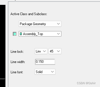 不会弹出对话框,看右侧一栏,由于线条一般在装配层和丝印层,它是描述元件的外框,也叫外框线,所以需要对其宽度进行设置,一般设为0.15mm宽度。在Line width项填写0.15即可。