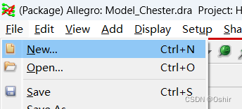 3.1 打开PCB Editor(Allegro)后,新建一个文件,选择菜单栏File->New,