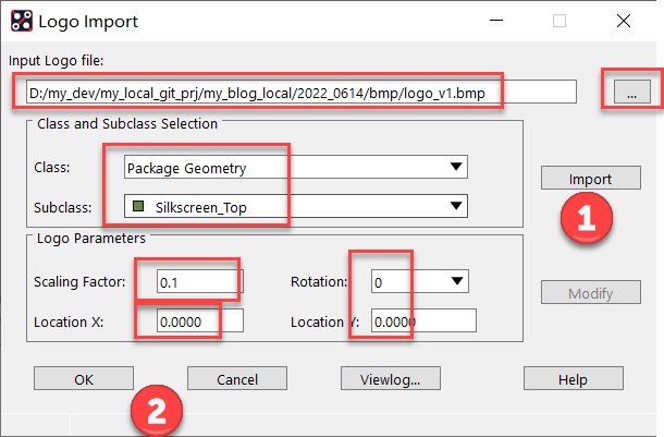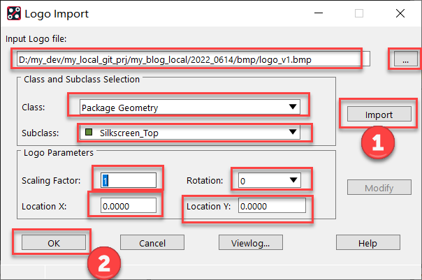 Cadence SPB17.4 Allegro 出的这个引入Logo (BMP)文件的功能好用, 再也不用使用第三方工具来转 文件格式 了。但是导入Logo的比例合不合适, 需要自己不断调整(上面做了补充, 导入时, 有Modify按钮, 可以就地调整, 直到调整合适)。