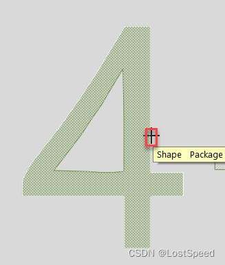 当外圈内部全部填充时, 在内圈不需要填充的图型外侧, 点击一下, 内圈就不填充了。如果有多个内圈, 依次在内圈外侧点击, e.g. 8 这个图形, 有上下2个内圈。建议填充1,2个字符或图形, 就保存一下, 如果点击后, 不是想要的填充效果, 及时撤销或重新打开工程重新来。填充完的Logo内容, 是填充的效果才对, 如下:合并完图形后, 结束合并图形操作, 将鼠标移动到Logo内容边缘, 合并的图形高亮后, 如果有内圈, e.g. 4这个字符, 内圈是空的才行。
