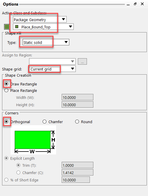 封装工程的单位是mm, 将格点改为0.2mm.格点开,放上长宽方向的尺寸看看: