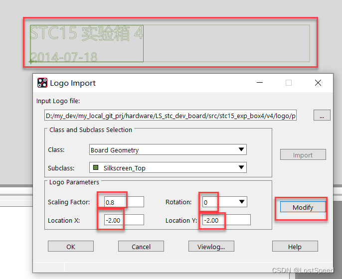 可以先在板子或封装工程上画一个参考框, 按照实际的画. e.g. 用PS画logo时, 实际尺寸是68x9mm, 那就在Allegro中, 选一个无关层, 画一个68x9mm的参考放置框, 供导入BMP图片时, 调整位置用。然后调整比例, 位置, 角度, 然后点击Modify. 如此反复, 直到导入的图片落到参考对话框内。剩下的就是做封装, 放上最小元素就行, 和本实验没大关系了。