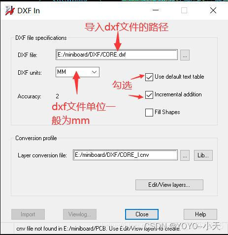 2.单位由默认的mil改成mm,因为dxf文件的单位一般都是mm。