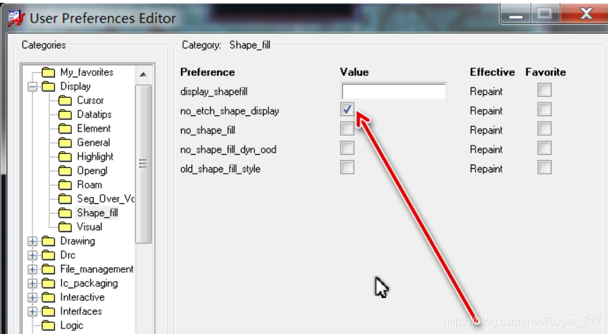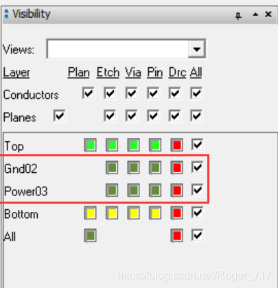 Setup->User Preferences…-> Display ->Shape_fill->no_etch_shape_display选项打勾则隐藏,否则显示。
