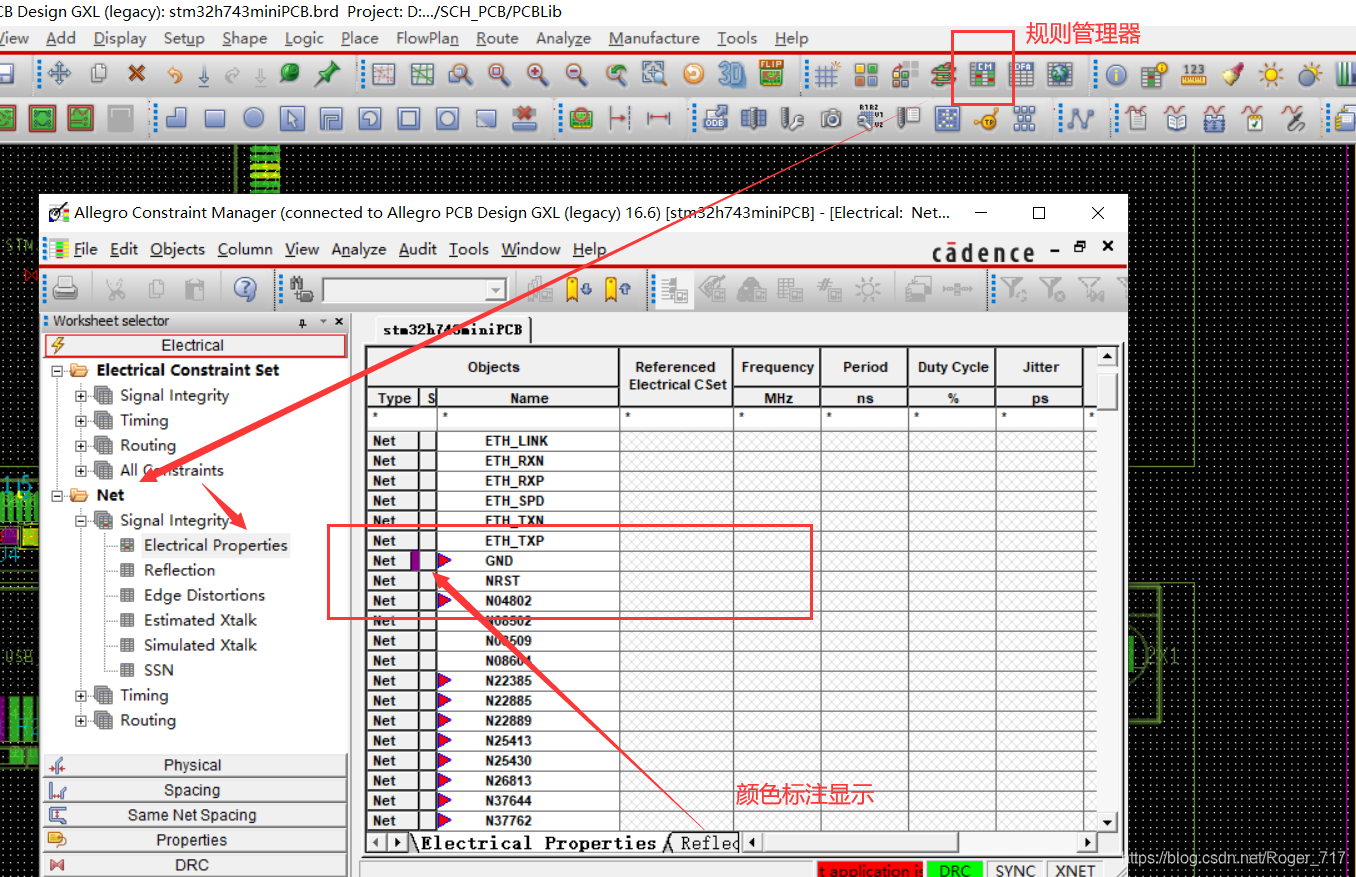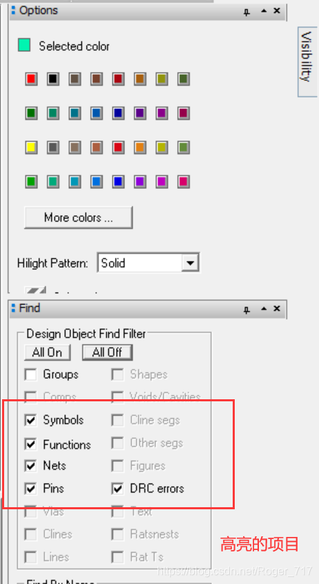 或者查看规则管理器,红色箭头表示高亮,左侧颜色表示高亮的颜色。