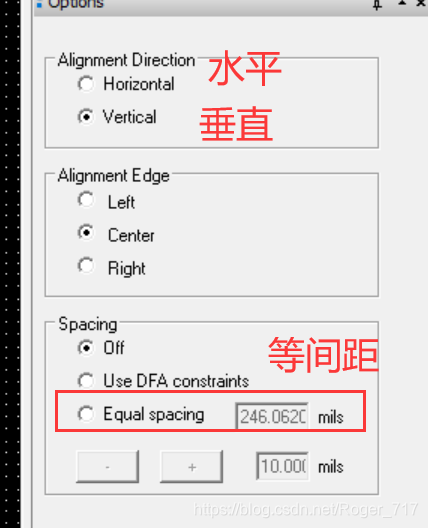 框选要对齐的元器件,选择其中一个基准,点击右键选择:Align components