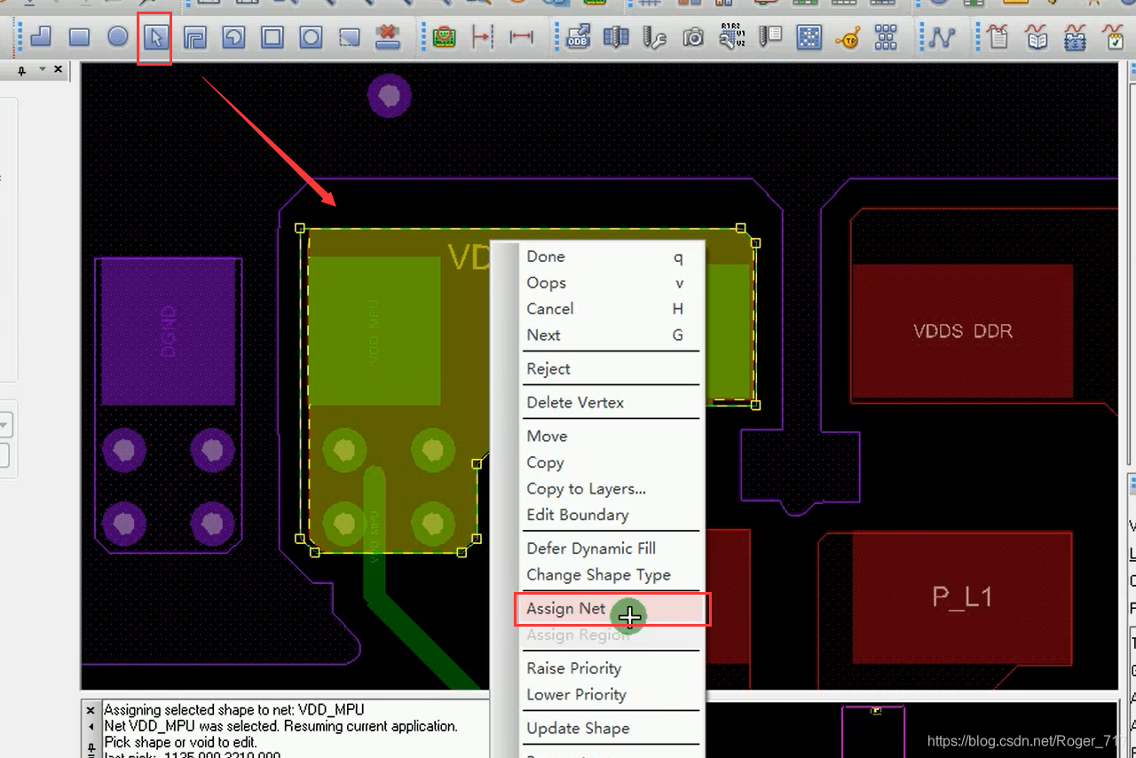 或者右键Assign Net 再点击网络,之后再绘制铜皮。(静态铜皮不避让,动态铜皮避让)